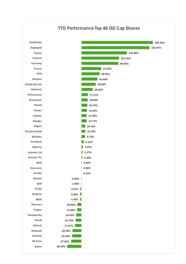 These are the stocks that have driven the JSE All Share Index, which is up 29% so far this year.