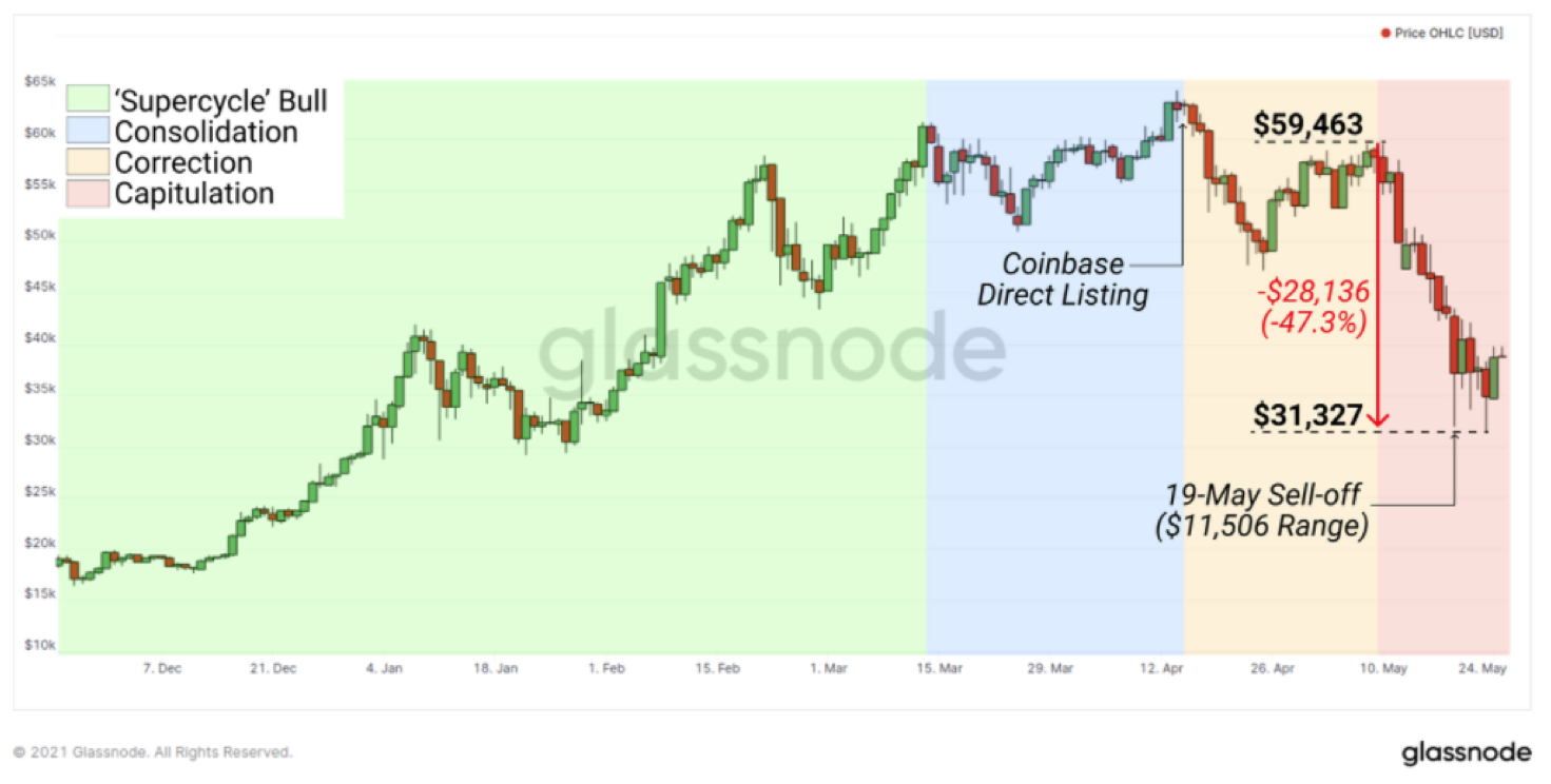 Bitcoin is testing support at $35 000 after a brutal sell-off over the last three weeks. Prices are down 40% since the second week in May, though there are signs of institutional support returning, according to an analysis by blockchain research group Glassnode.