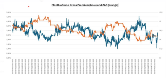 “It’s been all about the ZAR movements these past few months and election activity, both key drivers to the premium.