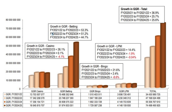 SA gross gambling revenue 2005-2025
