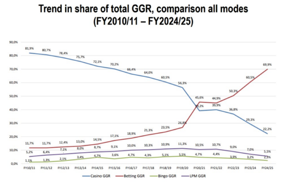 - Bingo (traditional and electronic bingo terminals) grew revenues by 21.6% in 2023 but slumped -8.6% in 2025.